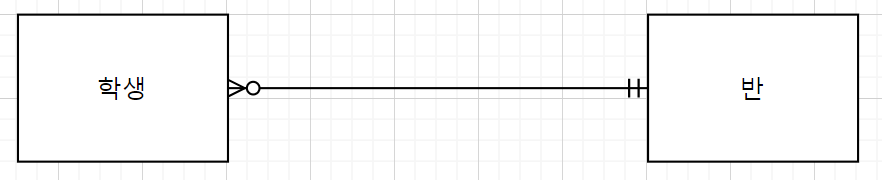 이 사진에서 학생 => 반 방향으로 관계를 읽을때 첫번째로 한개의 세로 실선을 볼수있는데