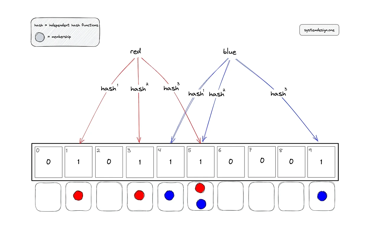 이 연산 속도는 블룸 필터에 저장된 데이터의 양과 관계없이 항상 일정합니다. 테이블에 값이 1개가 있든 1억 개가 있든, 확인에 걸리는 시간은 거의 동일합니다.