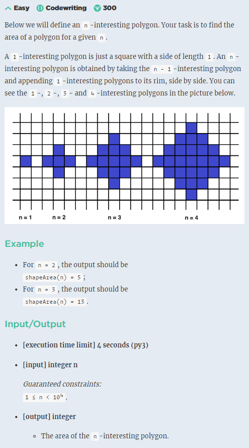 def shapeArea(n):